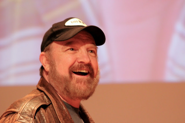 He talked about his favourite onset memory. It was during the shooting of Death’s Door. They had what he thought was one of those emergency training deals where everyone has to muster and watch a movie. He went and hid out in his trailer, but a PA knocked on the door and said, sorry Jim but you really need to do this. So he grumbled and grizzled his way over to where they were all supposed to meet and walked into the room to see everyone in the crew there. He knew something must have been up because Jensen and Jared were there and they’re never on set before he is! He sat down and waited for the health and safety video to start but instead it was a Bobby tribute video. He was incredibly moved. Many people cried. He ascertained that he didn’t. He said, “Jim don’t cry.” Yeah, I’m sure. He also talked about Jensen directing and how, as an actor, he felt totally safe and supported by Jensen. He said he’d watched Jensen essentially training for that role for years, asking questions of every guest director that came on board, absorbing as much of the technical information that he could. Jim was never interested in that stuff. Directing is too much work and he just wanted to act, but he said, Jensen was always interested. He’d been preparing for the role of director for years. (Side note….I get irrationally excited when the cast members pontificate about Jensen, I remember Jim saying on one of the WinBros podcasts that Jensen is a “Magnificent human being.” Seriously. I feel like getting that tattooed across my heart.). Anyhoooo, that was it. Jim wrapped up by signing a hat for auction. He wrote Balls and Idjit on it. Of course he did.